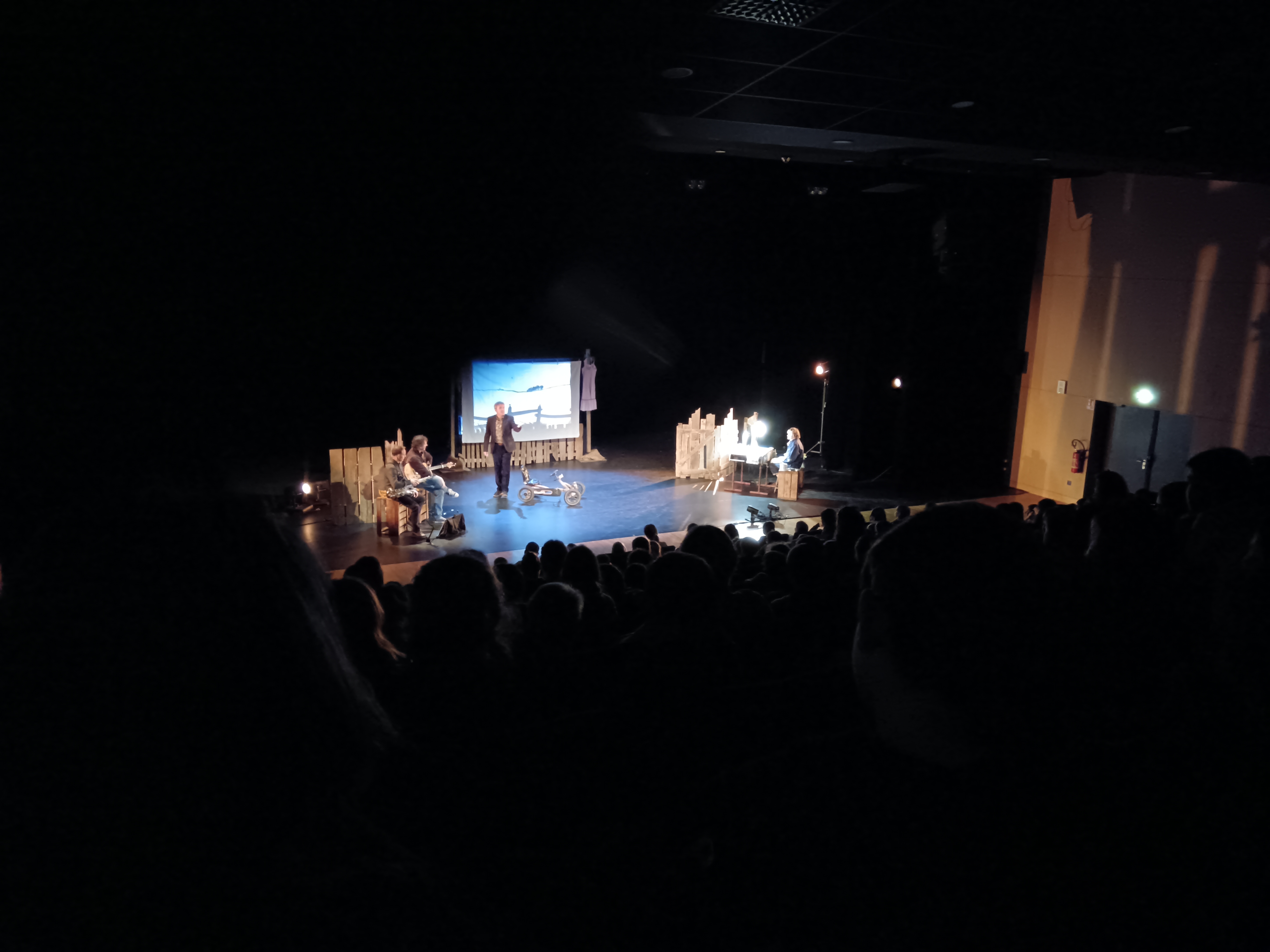 Une belle histoire de rêve, d'amour, de courage et d'amitié, contée en gallo, avec une dessinatrice et des musiciens. Un beau moment très apprécié par les élèves !